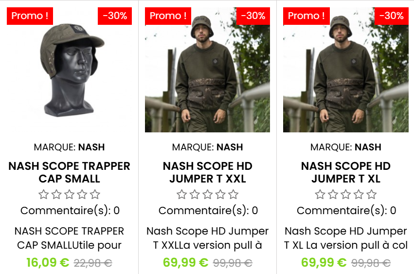 🔥 Jusqu’au 1er novembre, profitez de 30 % de remise sur une large sélection de vêtements Nash sur notre site CarpeConnect.com !
