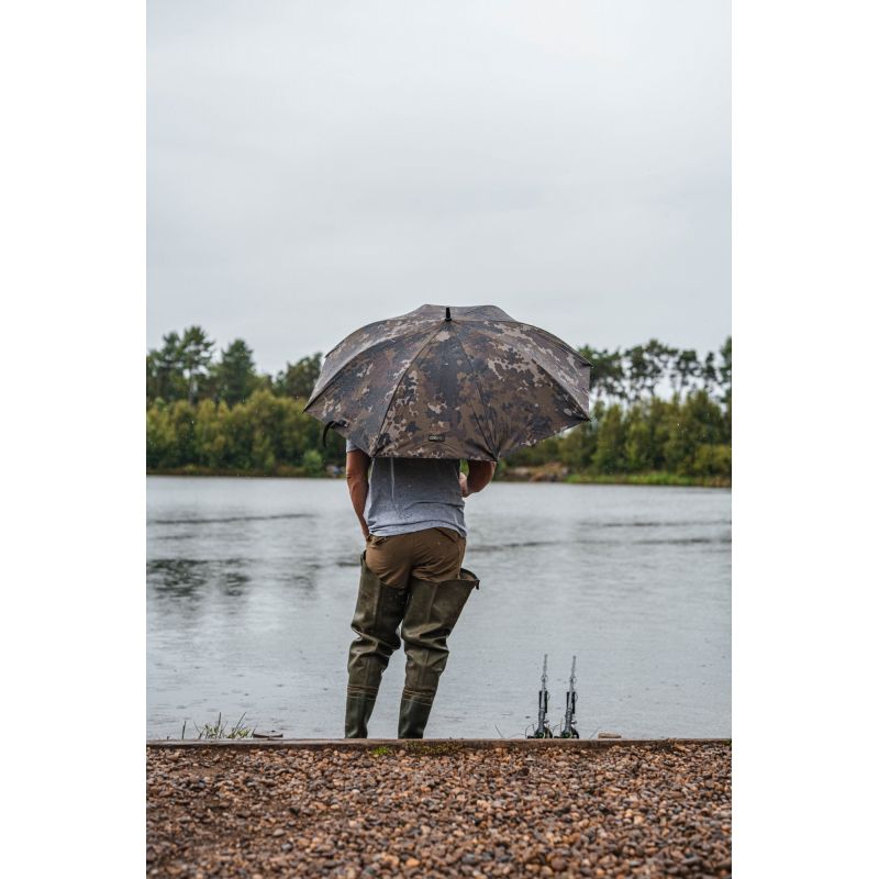 Avec un diamètre généreux de 140 cm, ce parapluie offre une protection complète et confortable. S’agissant d’un parapluie de pêche, la couleur doit également être parfaite. Fabriqué en tissu imperméable avec une finition mate kamo foncée, ce parapluie est non seulement élégant, mais aussi très différent d’un parapluie de golf.